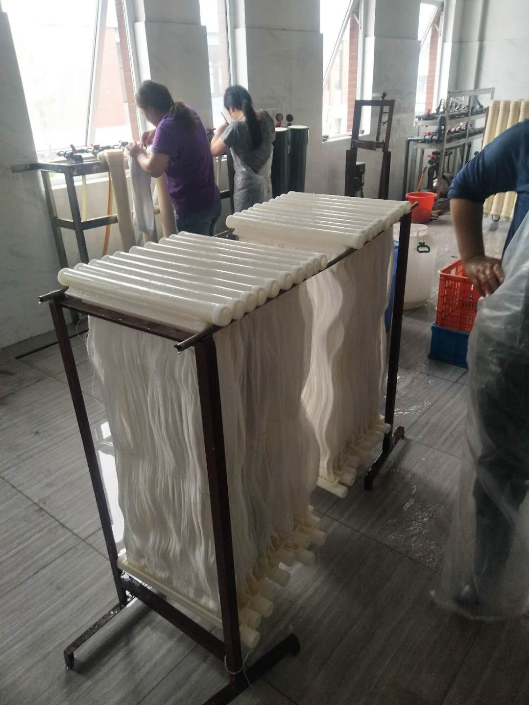 1、 強(qiáng)度高:增強(qiáng)復(fù)合PVDF中空纖維膜由于采用了獨(dú)特的支撐層制膜技術(shù),使得其抗拉伸強(qiáng)度和抗壓強(qiáng)度遠(yuǎn)遠(yuǎn)高于普通的中空纖維膜,單根膜絲拉力大于50KG,被形象地稱為“拉不斷的膜”。